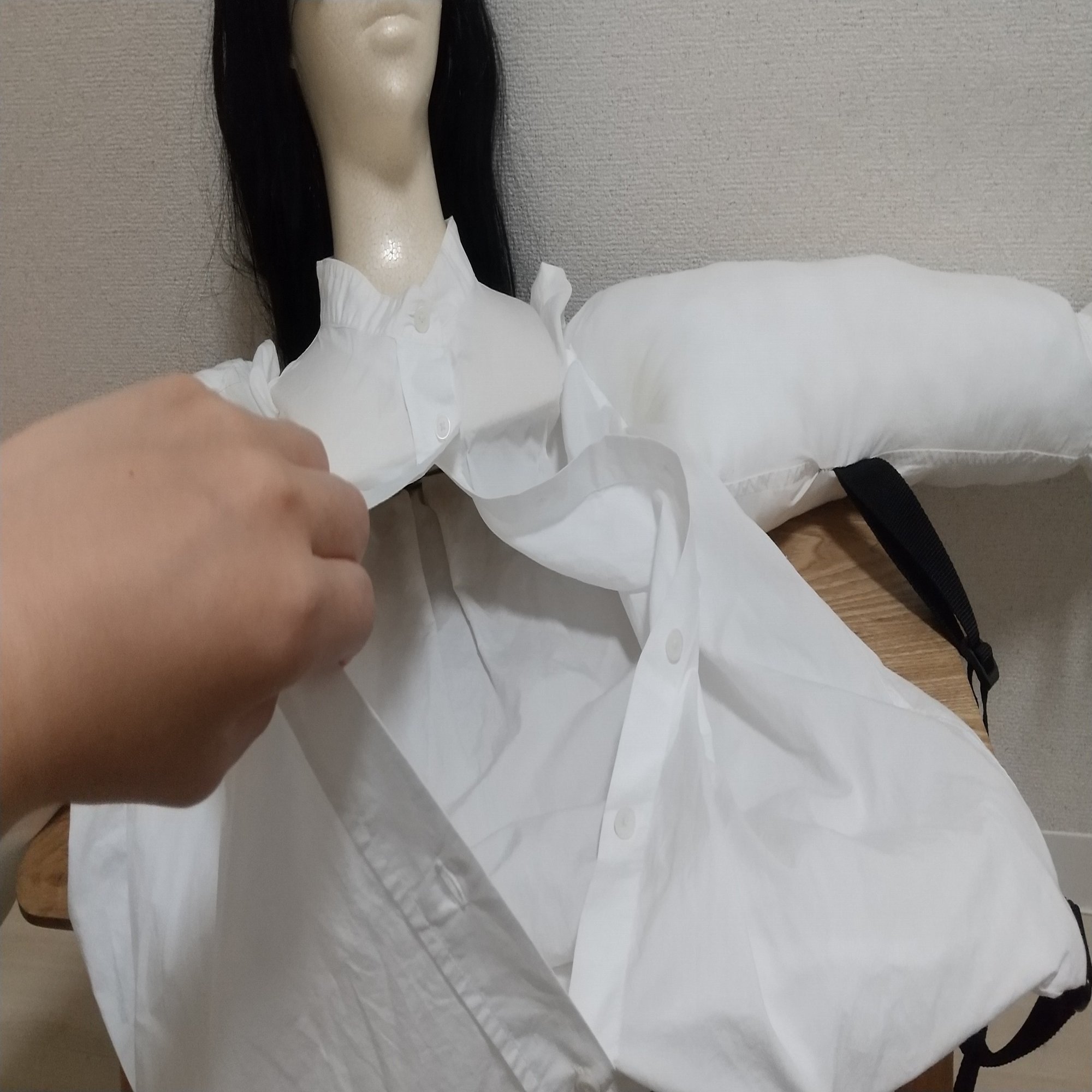 幽霊の腕を私の肩に乗せたいので、紐を肘の辺りに付けました。