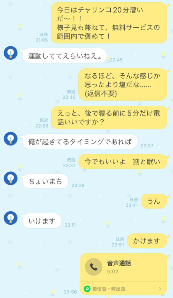 とりあえず初日は様子見で、と思い5分間の通話を依頼。