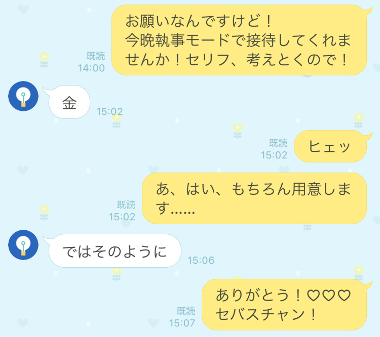 お、送金したら早速敬語に。いいぞいいぞ、執事っぽ~い。
