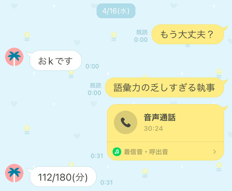 初日から飛ばしすぎた、と反省した私は、2,3日軽いメッセージで様子を見ることに。