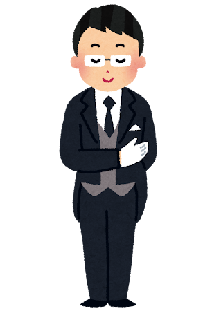 眼鏡で黒髪、ピシッと決めた燕尾服。