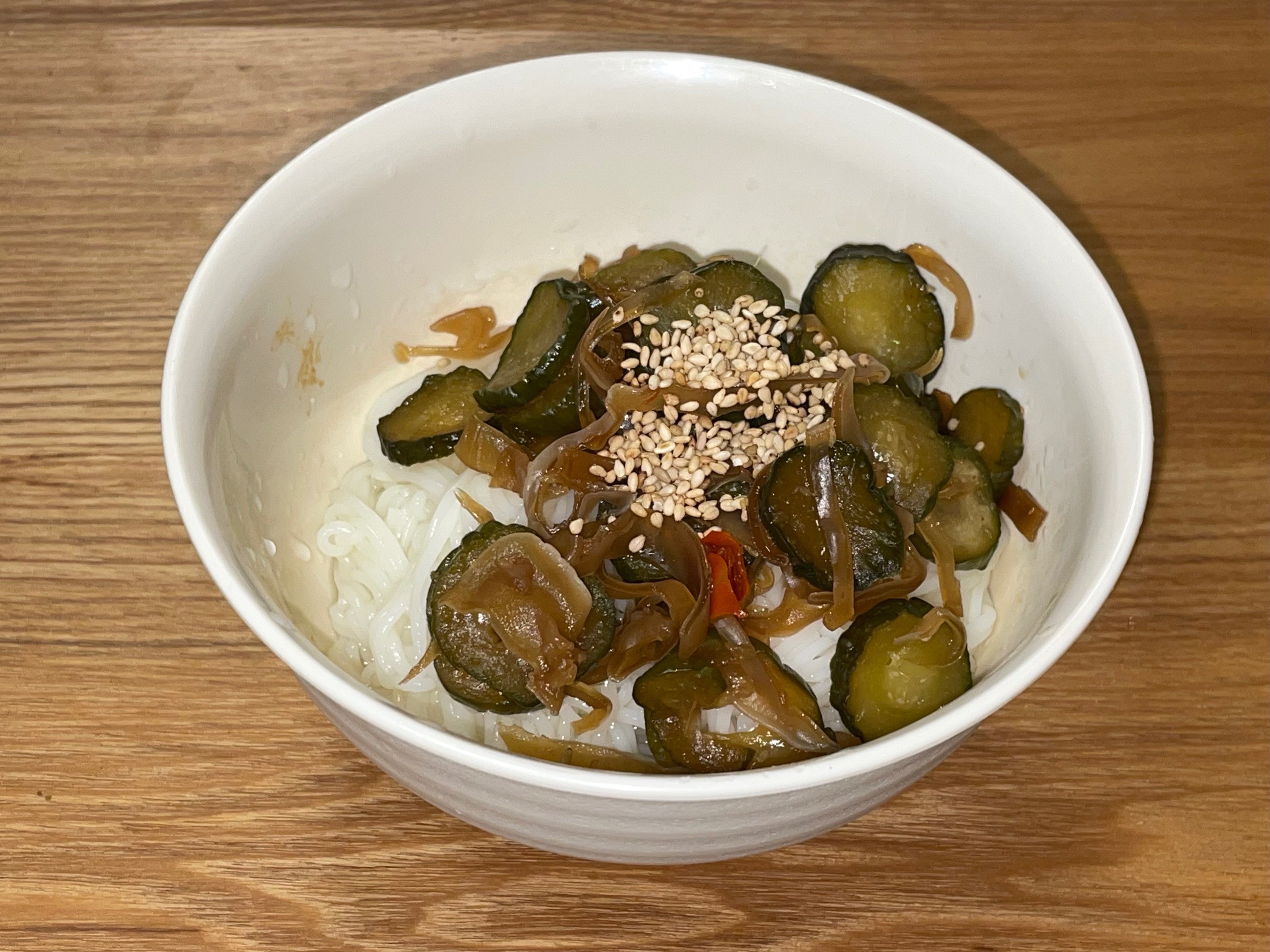盛りゴマって器に盛った後にふったほうが見た目が良い気がするので煮詰めたキュウリとキクラゲを器に盛り、ゴマをかけたら完成!!!