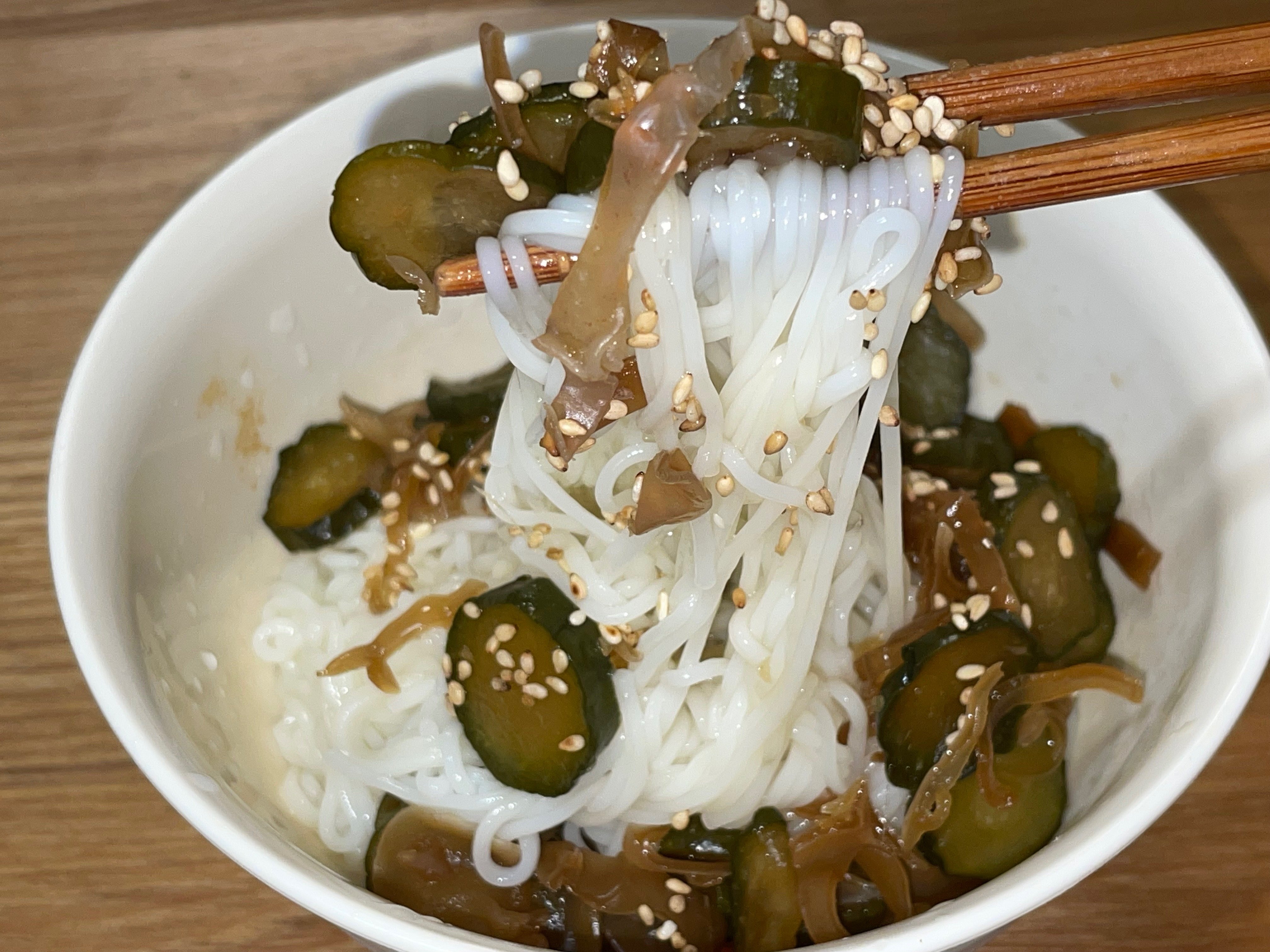完成! キュウリとキクラゲの佃煮のつゆだくごはん