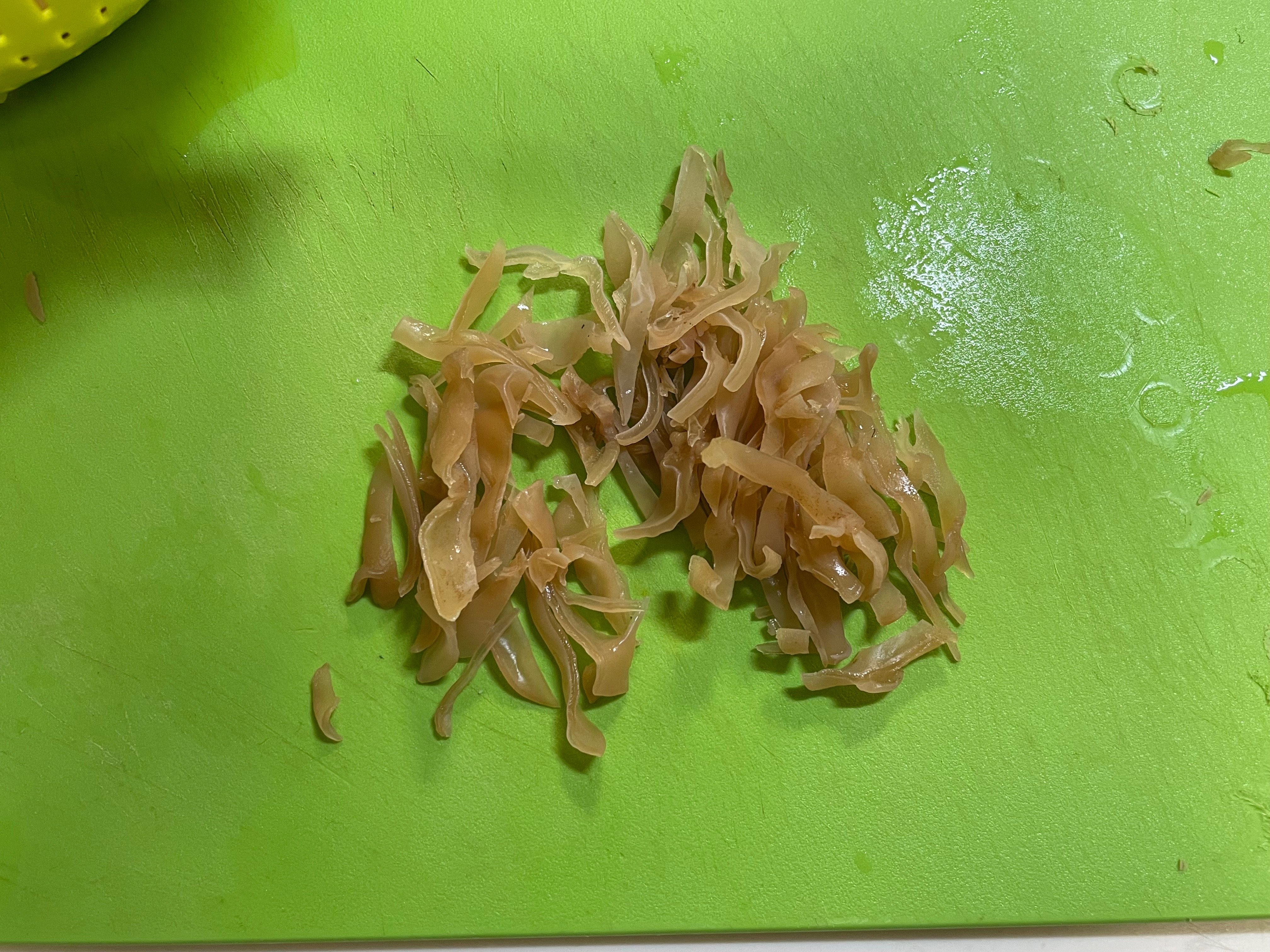 キャベツの千切りはしたことあるけどキクラゲの千切りは初めてですね。そもそもキクラゲを調理するのが初めてだ。